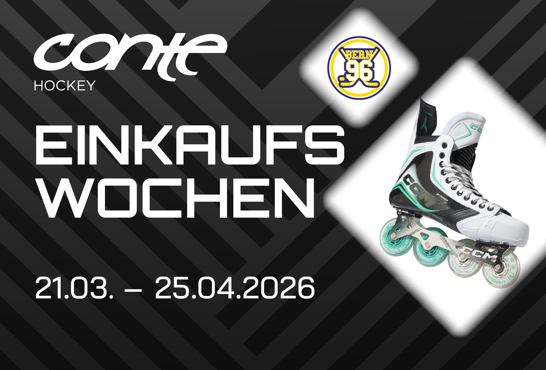Vom Samstag, 21. März bis am Samstag, 25. April 2026 profitierst Du bei unserem offiziellen Ausrüster Conte Hockeyshop in Bern von grossen Rabatten!